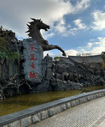 茶马古城距市区最近,却被群山环抱,空气格外清新。甫一入城,精美的雕塑与扑面而来的自然气息便令人精神为之一振。