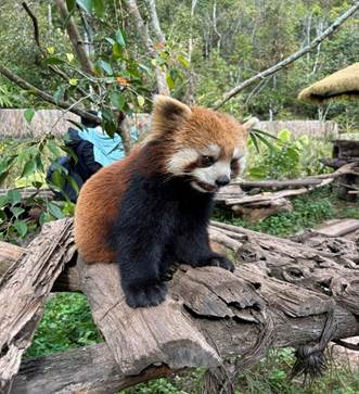 午后,我们游览了森林公园的动物园区。这里的动物多处于半野放状态,远比传统动物园更具野趣与真实感。园区不大,沿主路步行约3–4小时即可览尽。最受孩子欢迎的项目是“喂小熊猫”——工作人员将苹果粒插在竹签上,由小朋友亲手递喂。小熊猫憨态可掬地取食,惹得众人笑声不断。